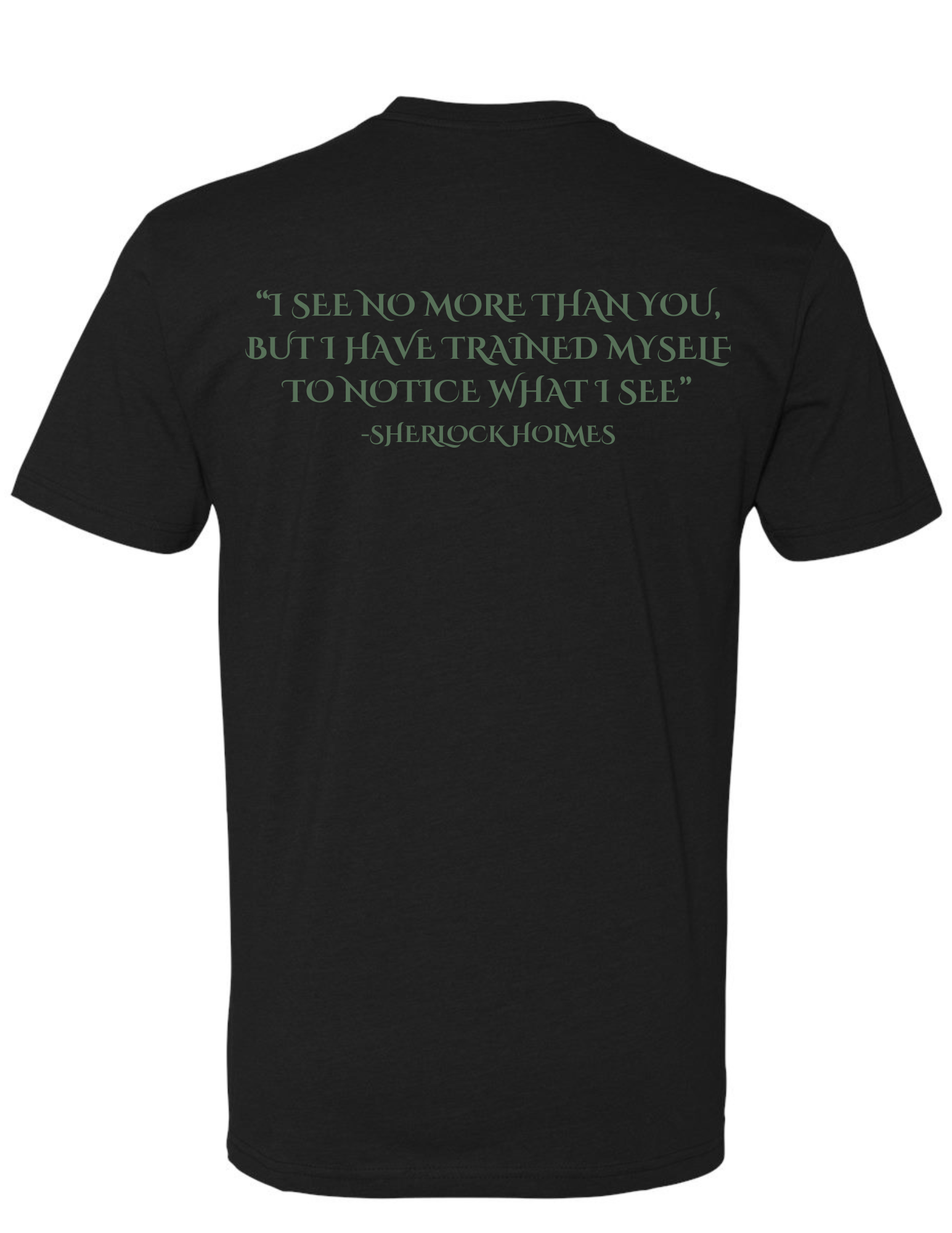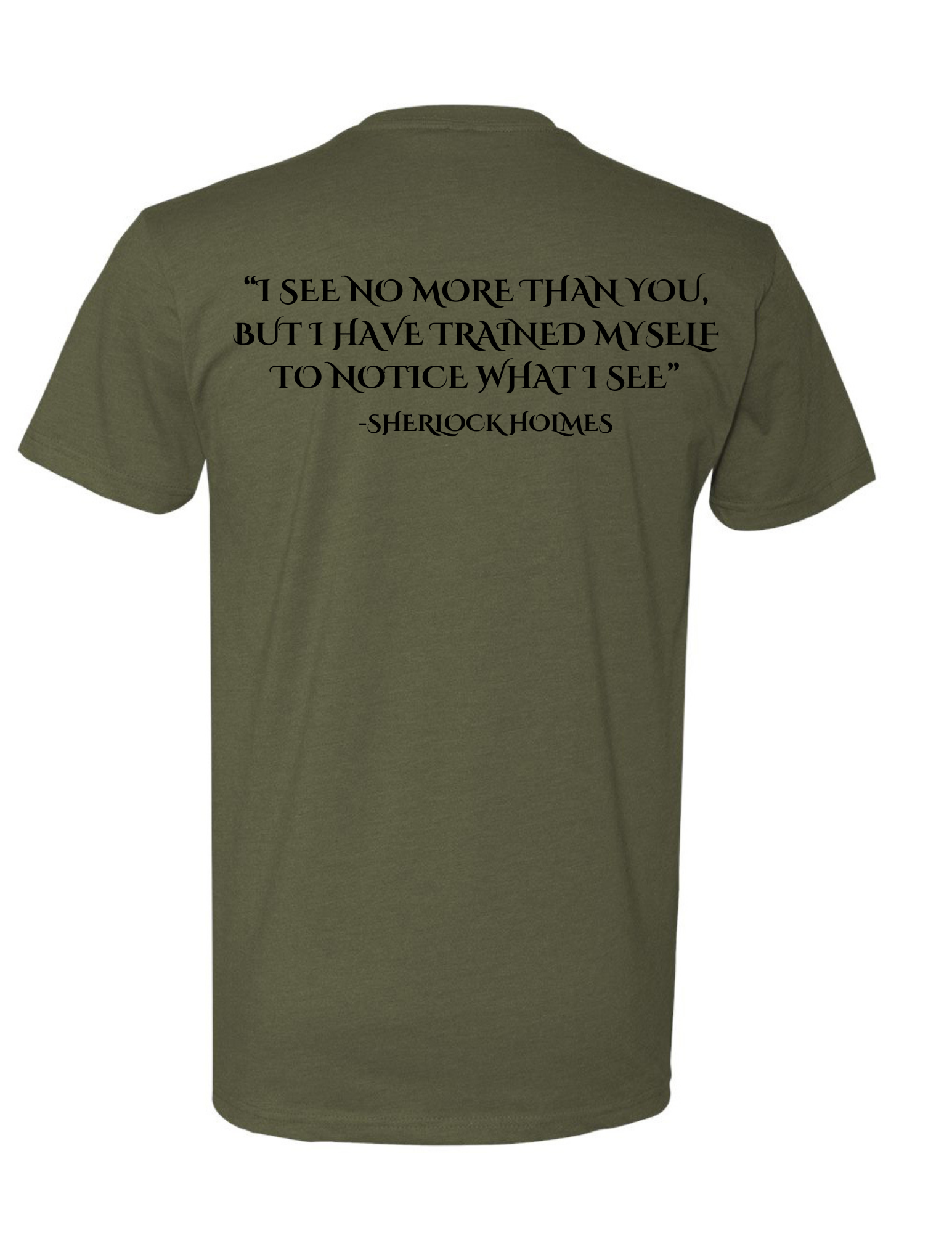 Represent ACE IT with our signature "Original" T-shirt, stamped with the iconic Sherlock Holmes quote, "I see no more than you, but I have trained myself to notice what I see." This statement epitomizes the keen observational skills that distinguish the pro-active cop from the ordinary, highlighting an ability to perceive beyond the superficial.